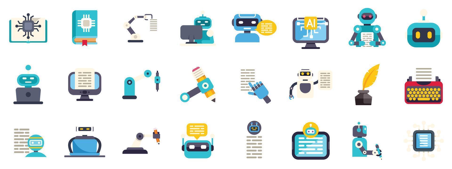 Set of icons representing ai writing and creating content automatically Pro Vector