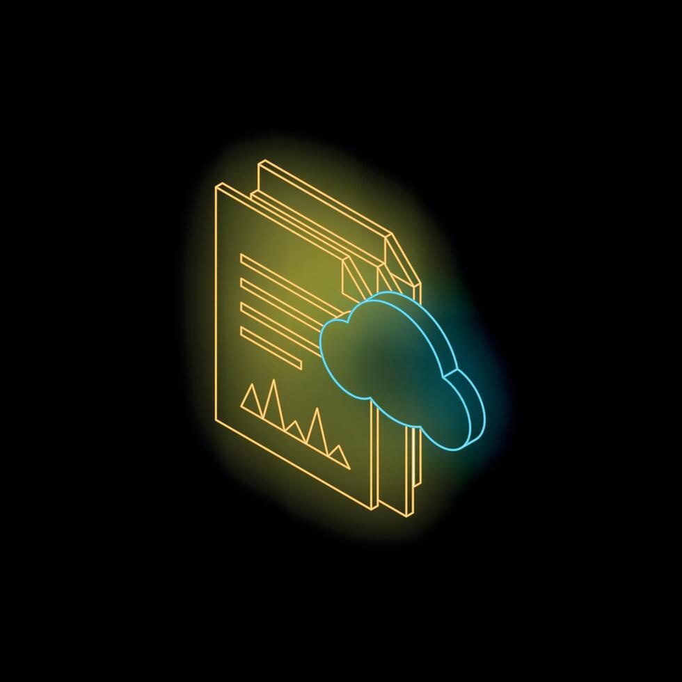 Neon cloud computing uploading documents to cloud storage Pro Vector