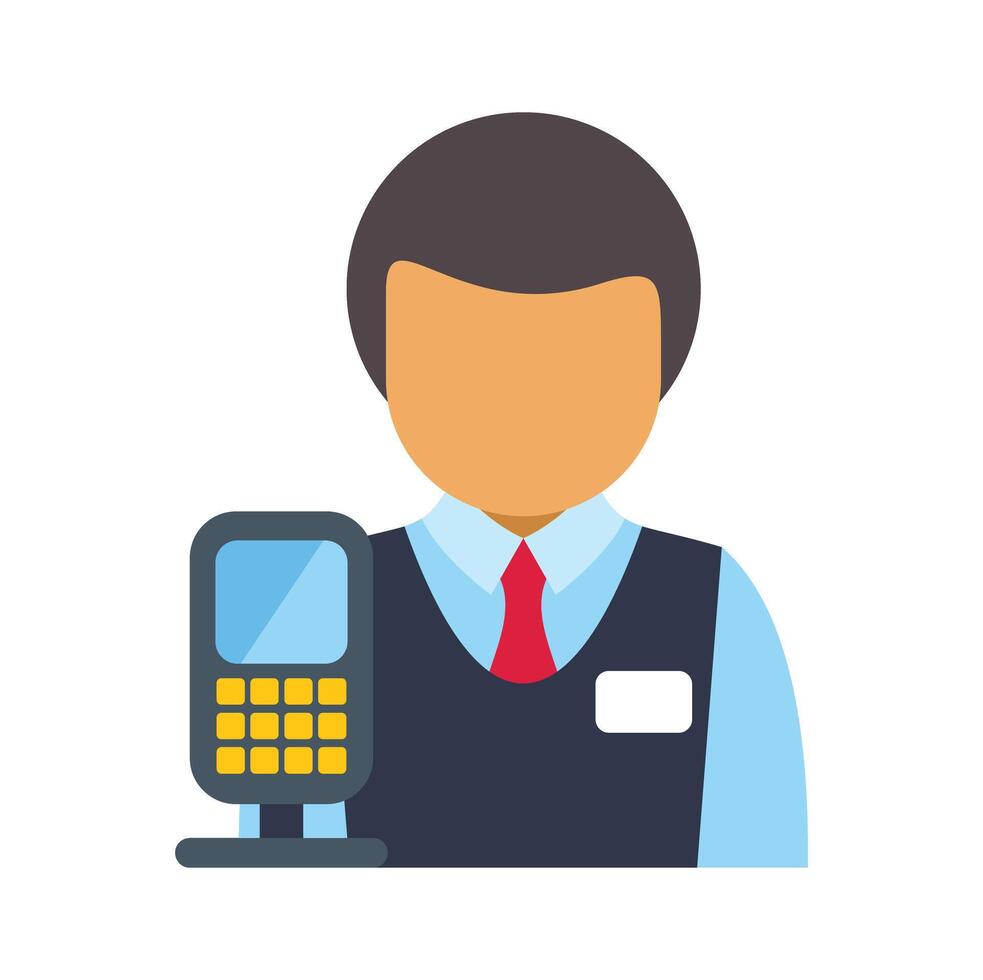Shop assistant using pos terminal accepting contactless payment Pro Vector