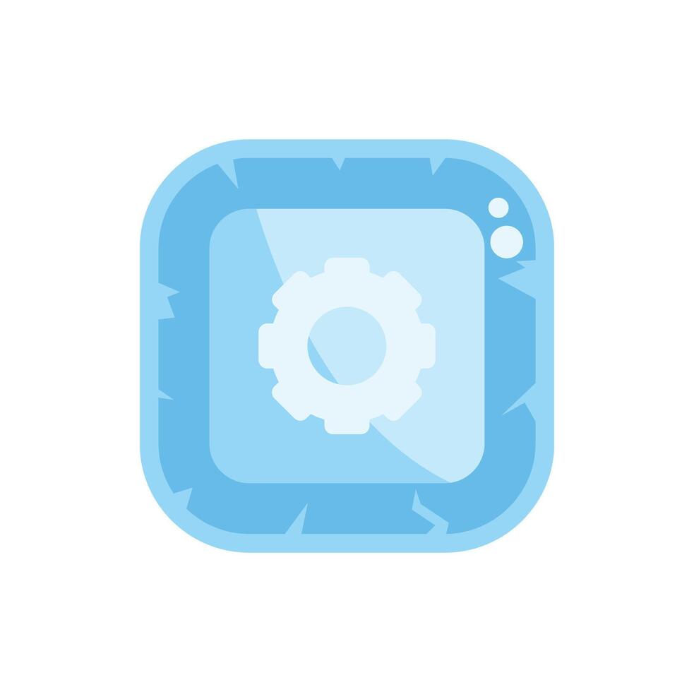 Ice button with gear showing configuration or settings in videogame interface Pro Vector