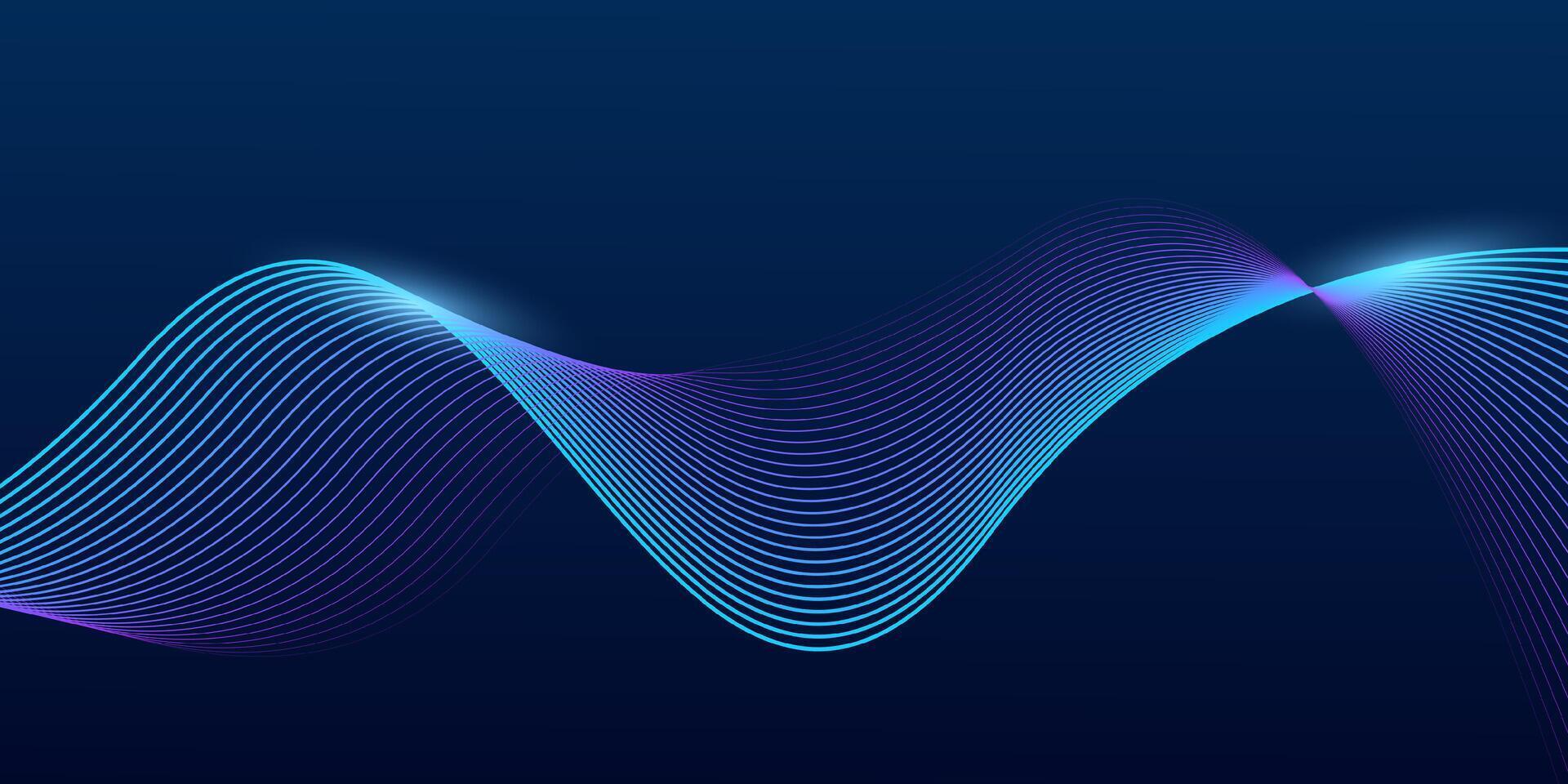 Abstract dark blue background with dynamic wave line.Futuristic technology concept. Pro Vector