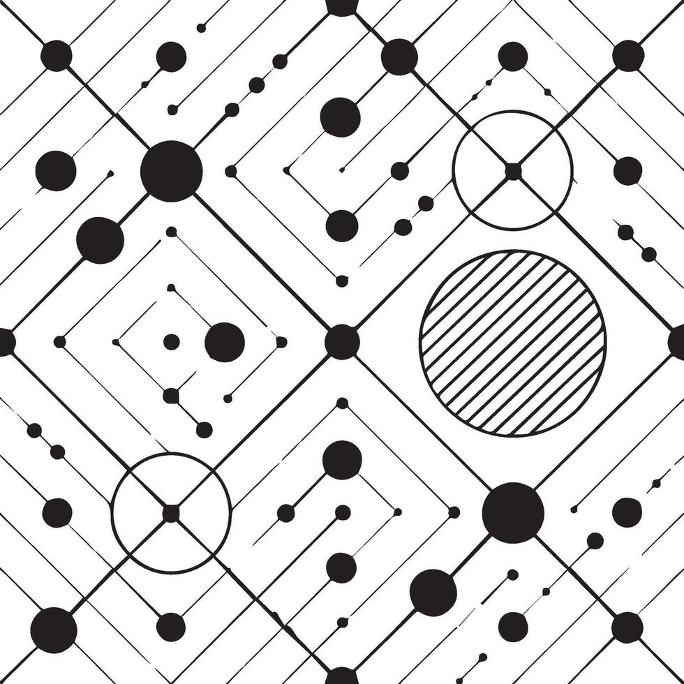 a black and white abstract pattern made up of multiple lines and dots Free Vector