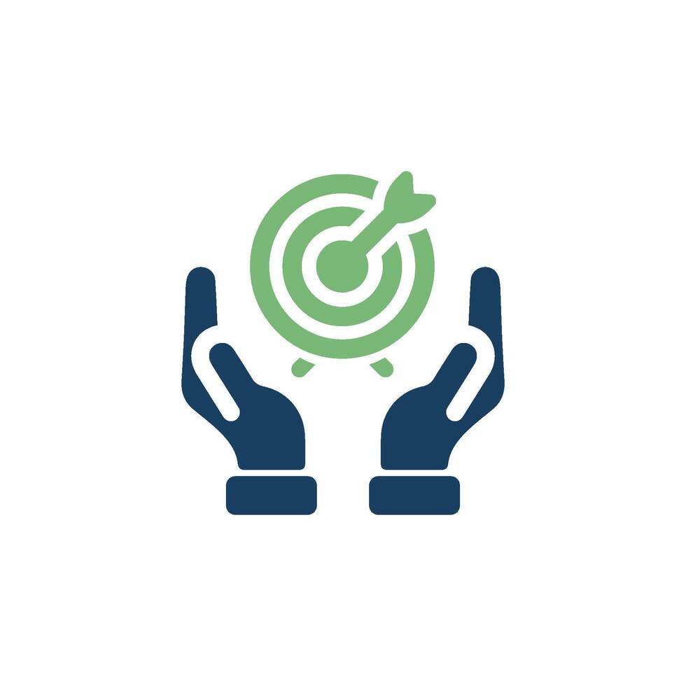 A creatively designed icon that illustrates a target symbol being held by hands, effectively representing the strategic goals and objectives in both business and project management contexts Pro Vector