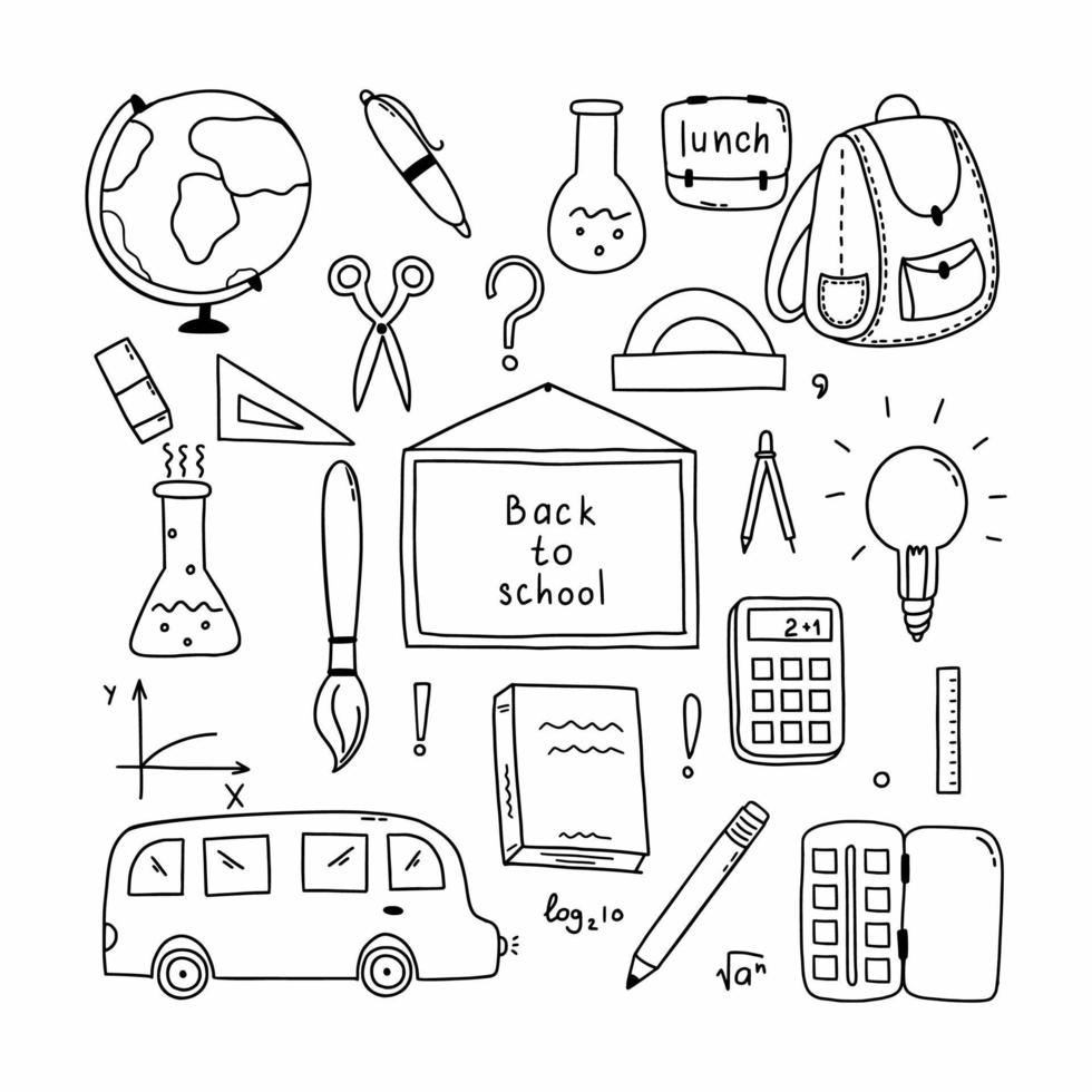 Doodle set back to school. Collection of vector icons. Design elements. Sketches on topic of training and education. Pro Vector