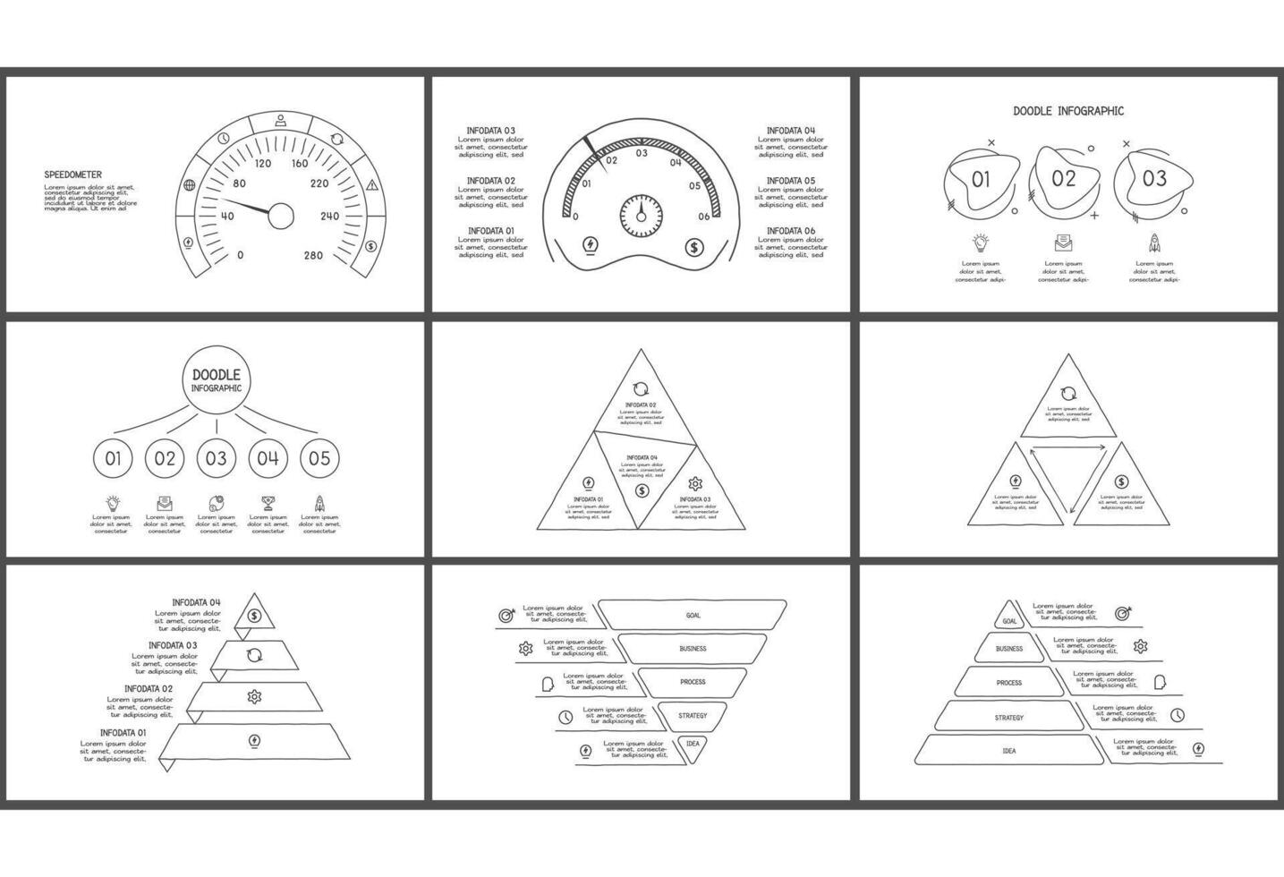 Set Doodleconcept for infographic with 4, 5, 6, 7, steps, parts or processes. Template for web on a background. Pro Vector