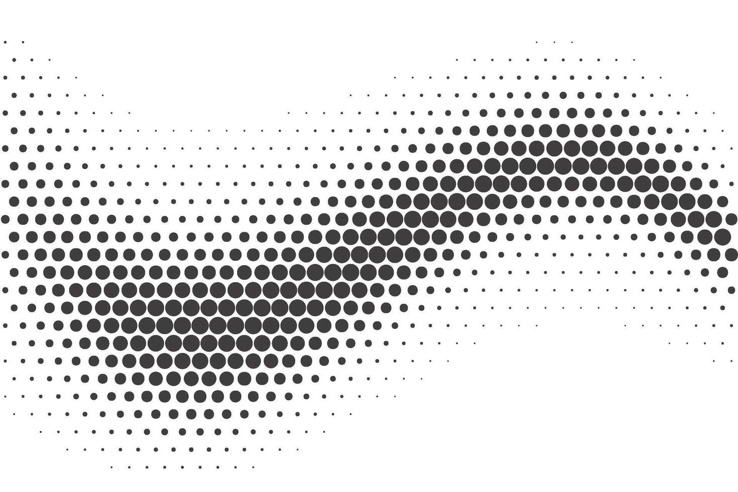 Halftone pattern wavy background. Half tone gradient fade. Abstract geometric border shape. Simple black dynamic curved illustration on white backdrop. Pro Vector