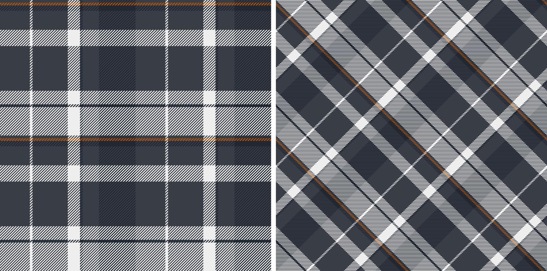 Stylish dark grey and white plaid patterns, perfect for textile design, fashion, website backgrounds, or wrapping paper. Two distinct plaid styles offer versatile options for various projects. Pro Vector