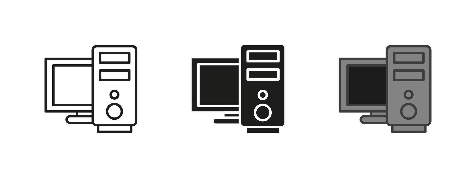 Computer icon. Desktop PC illustration. Office workstation symbol. Technology hardware sign. Internet network concept. Digital processing graphic. Tower PC with monitor classic desktop setup. Pro Vector