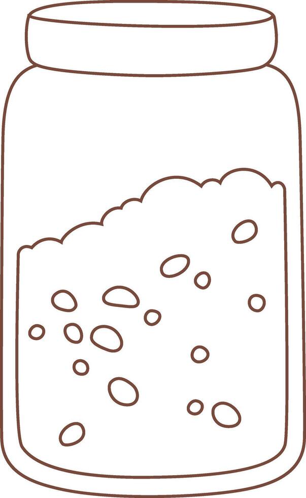 Simple brown line drawing representing a closed transparent jar containing a grainy substance with small irregular pieces, isolated on a white background Pro Vector