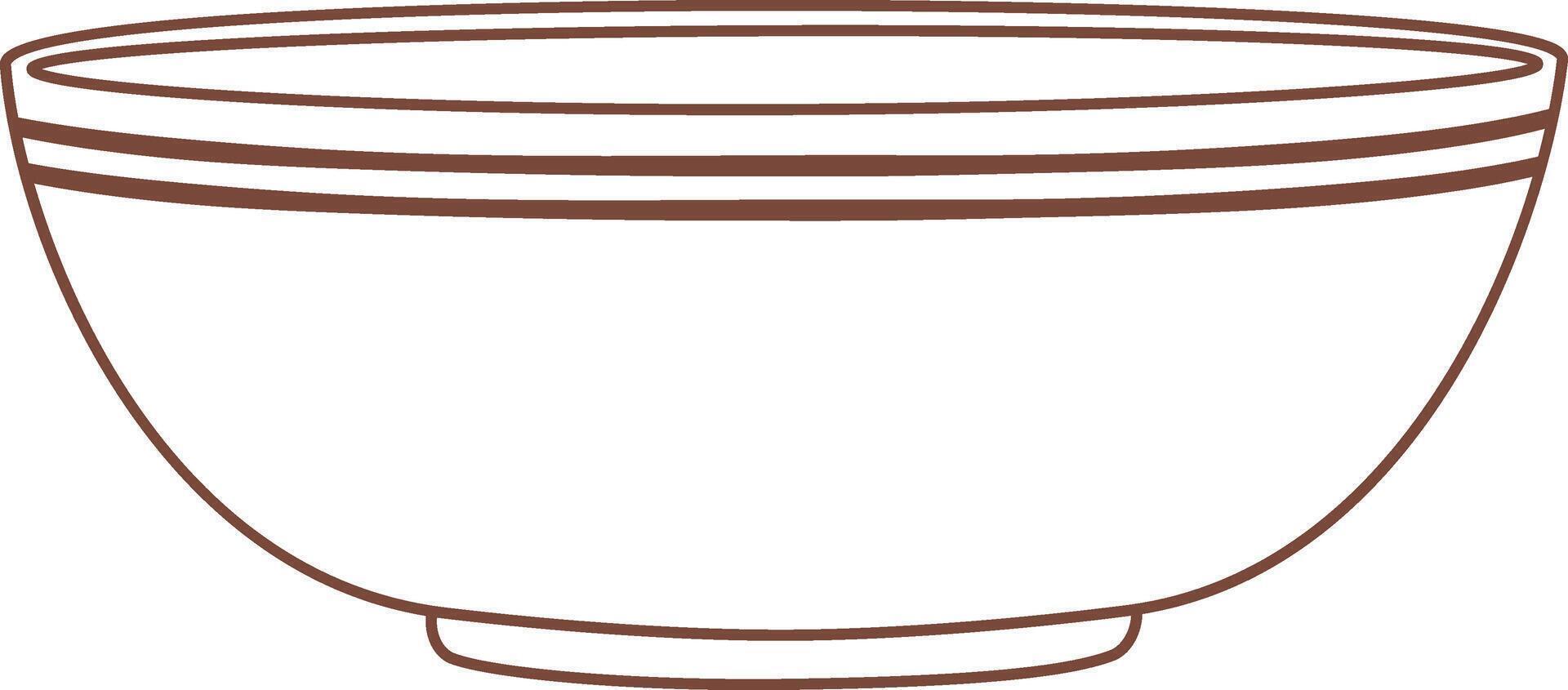 Simple illustration of a deep empty bowl with two brown horizontal lines on its side, representing a common household item used for serving food Pro Vector