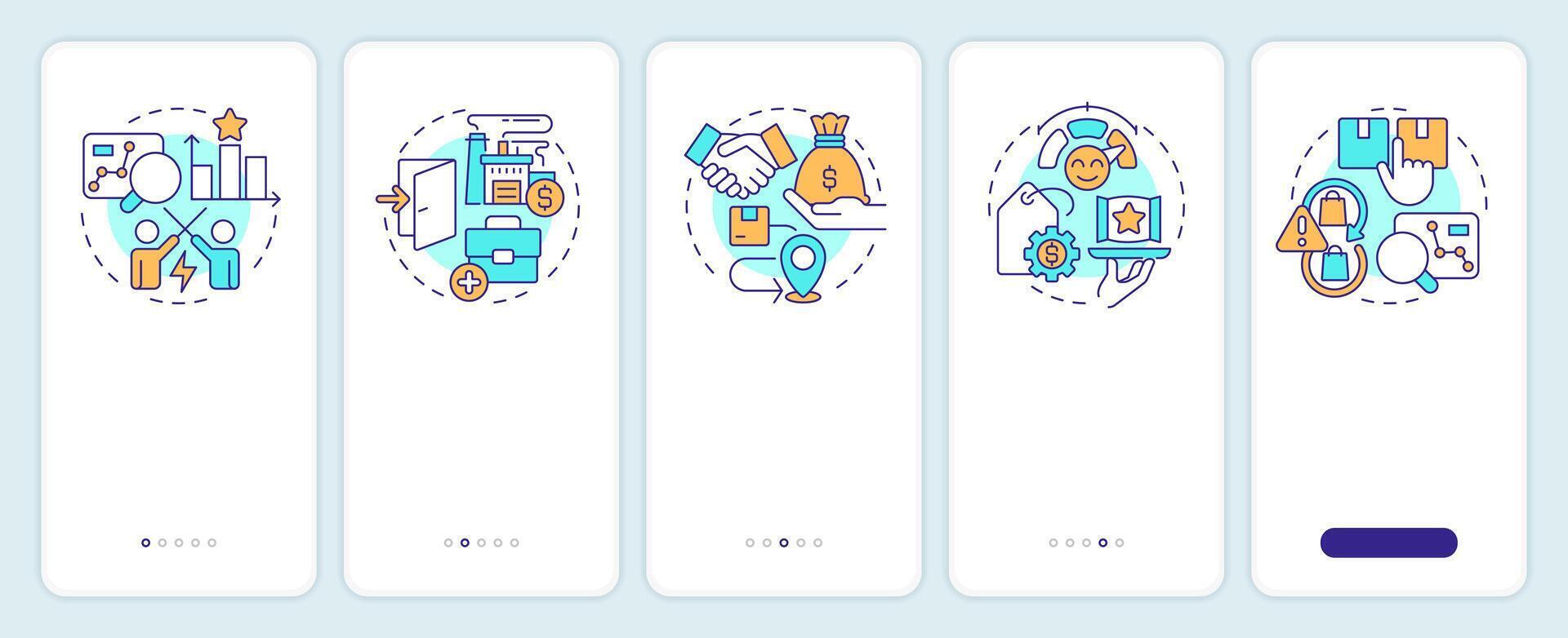 Porter 5 forces onboarding mobile app screen. Management. Walkthrough 5 steps editable graphic instructions with linear concepts. UI, UX, GUI template Pro Vector