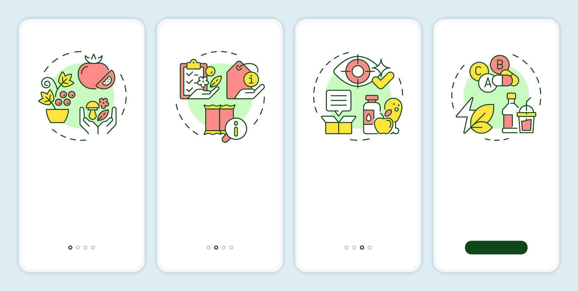 Food industry trends onboarding mobile app screen. Walkthrough 4 steps editable graphic instructions with linear concepts. UI, UX, GUI template Pro Vector