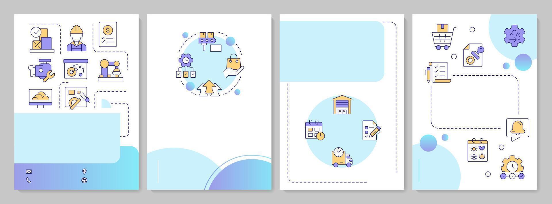 MRP blue circle brochure template. Production scheduling and inventory control system. Leaflet design with linear icons. Editable 4 layouts Pro Vector