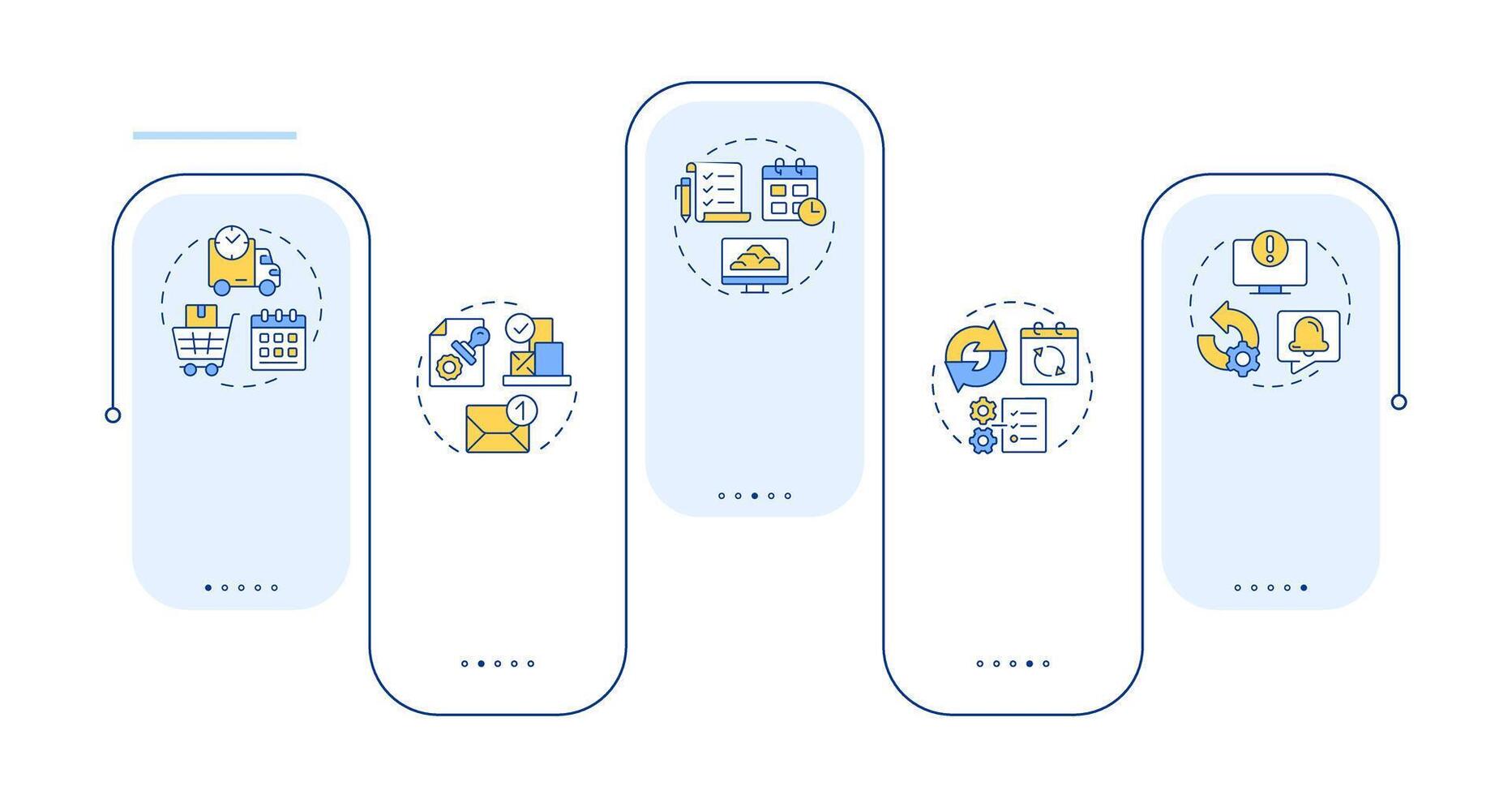MRP outputs rectangle infographic . Industrial supplies management. Production planning. Data visualization with 5 steps. Editable rectangular options chart Pro Vector
