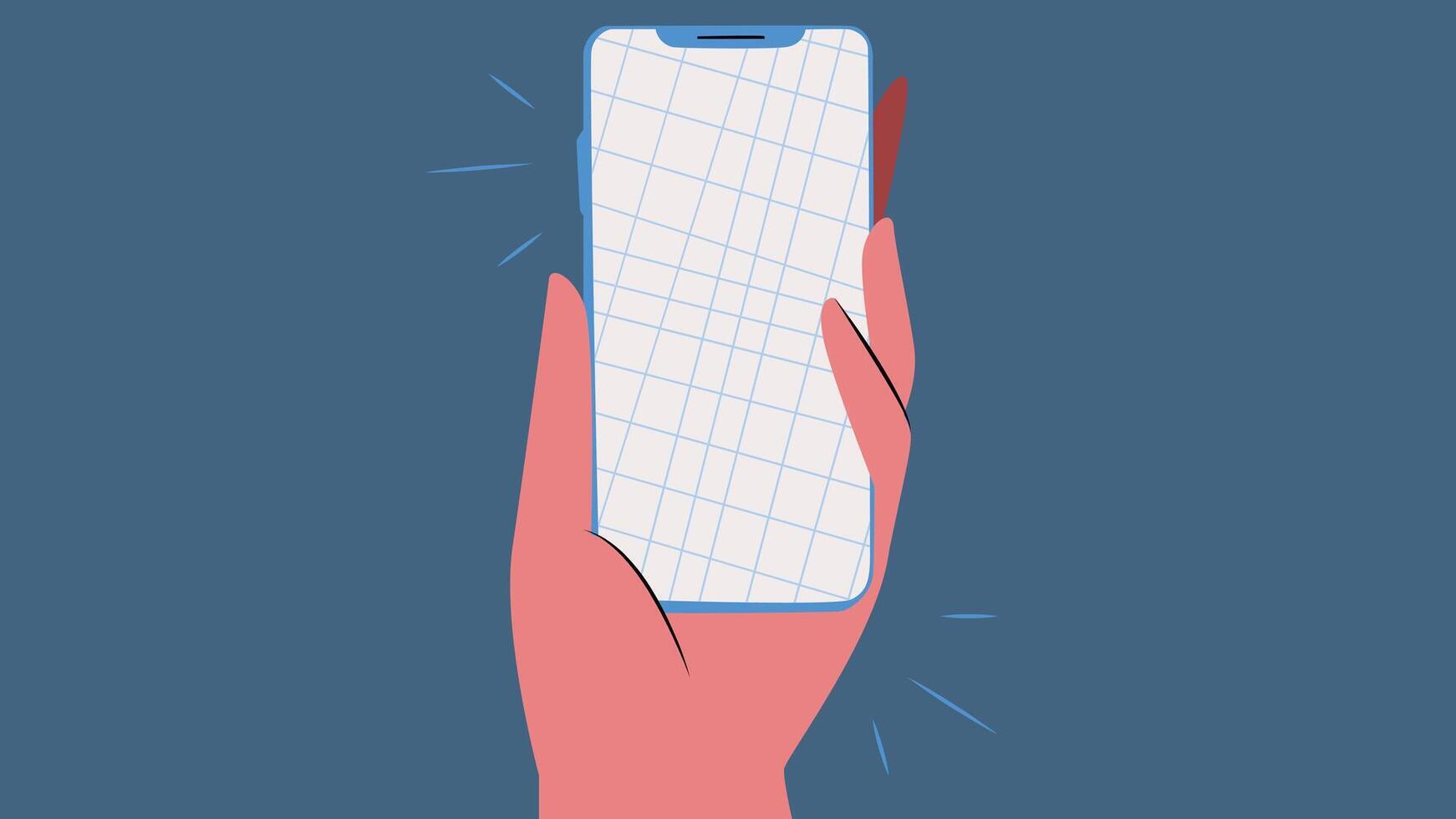 An illustration of a hand holding a mobile device displaying a map on its screen Pro Vector