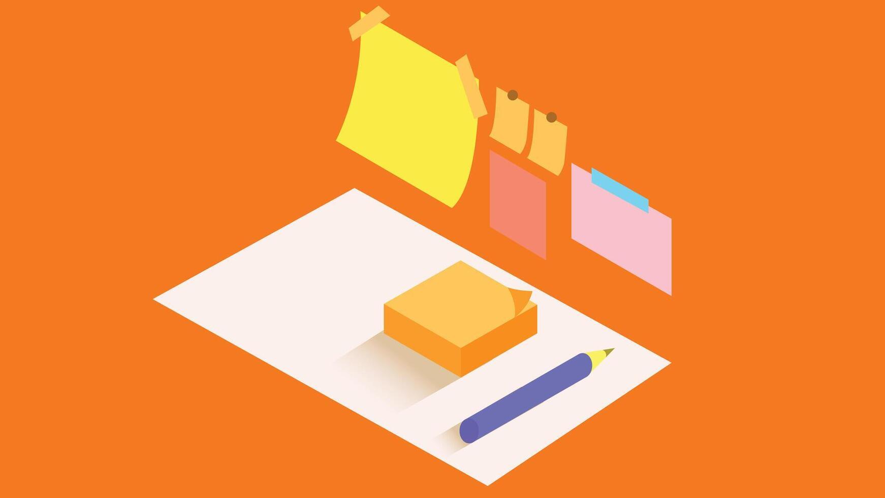 isometric illustration of sticky notes arranged on a wall, creating a dynamic, organized display Pro Vector