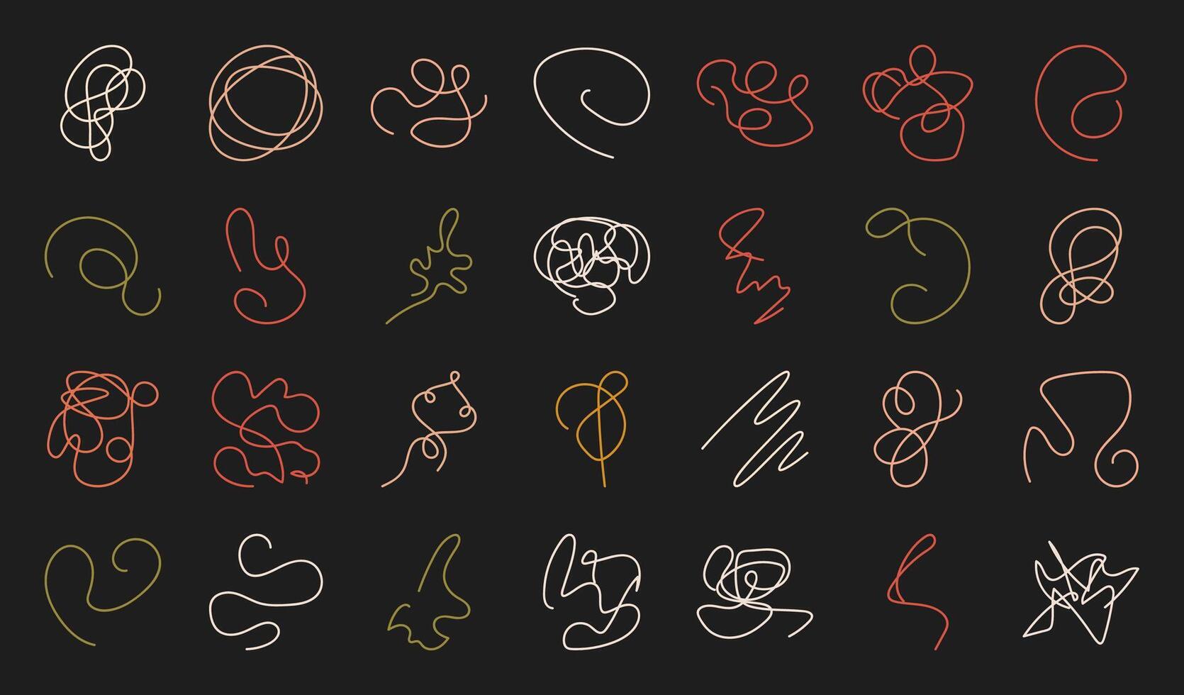 Flat organic random line scribble silhouette set, cute boho asymmetric form graphic, modern amorphous tangle knot collection, doodle abstract minimal shape design, trendy liquid irregular symbol art, Pro Vector