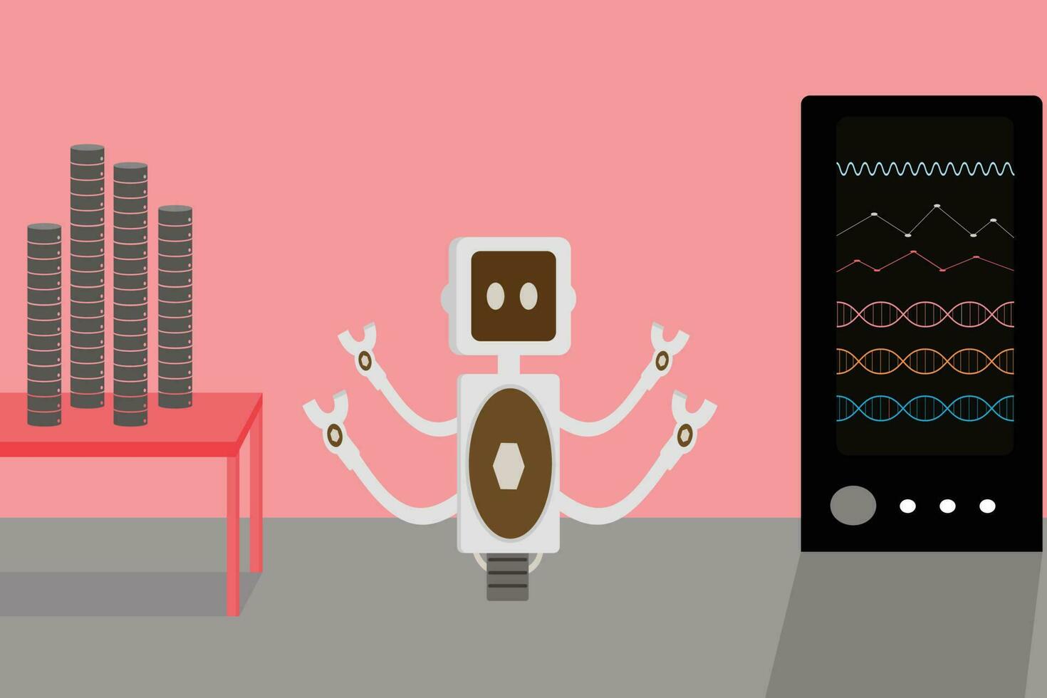 lab robotic equipment with DNA sequencer for high throughput deep mutational scanning Pro Vector