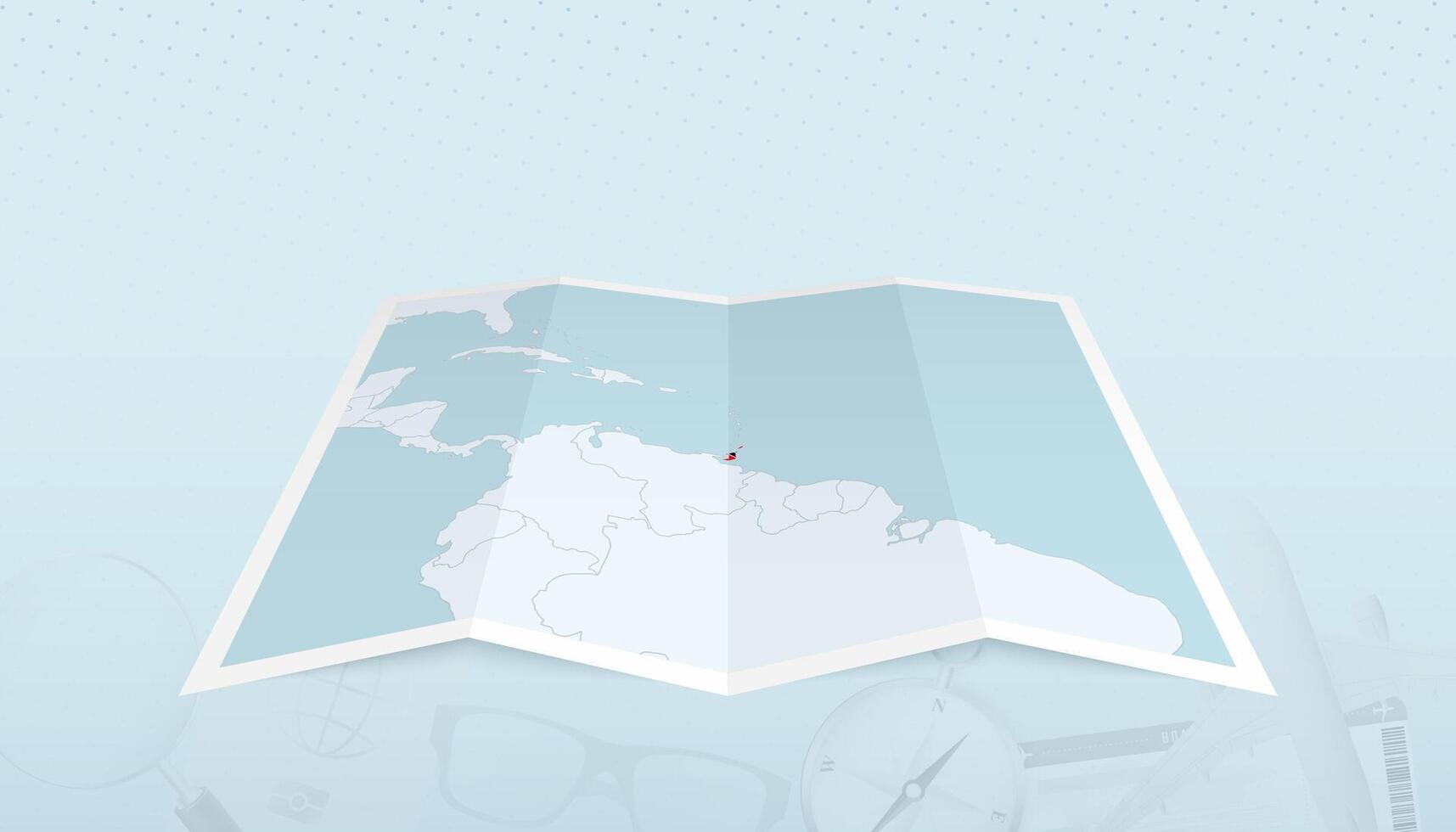 Map of Trinidad and Tobago with the flag of Trinidad and Tobago in the contour of the map on a trip abstract backdrop. Pro Vector