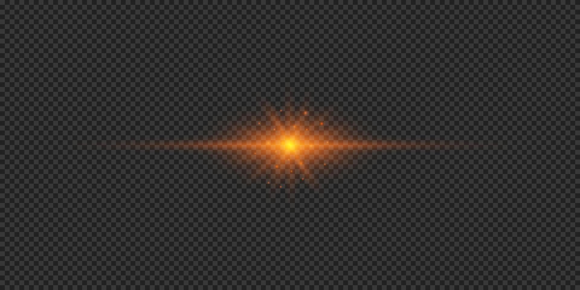 Light effect of lens flares. Orange horizontal glowing light starburst effect with sparkles on a grey background. illustration Pro Vector