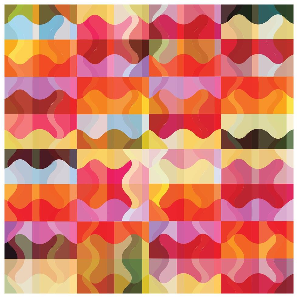 A vibrant abstract pattern featuring overlapping wavy shapes in shades of red, pink, yellow, and orange, arranged in a grid. Pro Vector