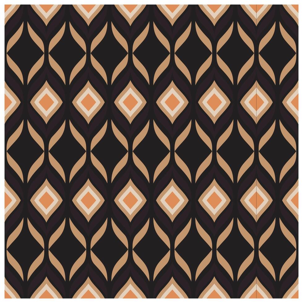 A geometric pattern featuring alternating diamond shapes in warm tones of peach and beige against a black background, interspersed with flowing leaf-like designs. Pro Vector