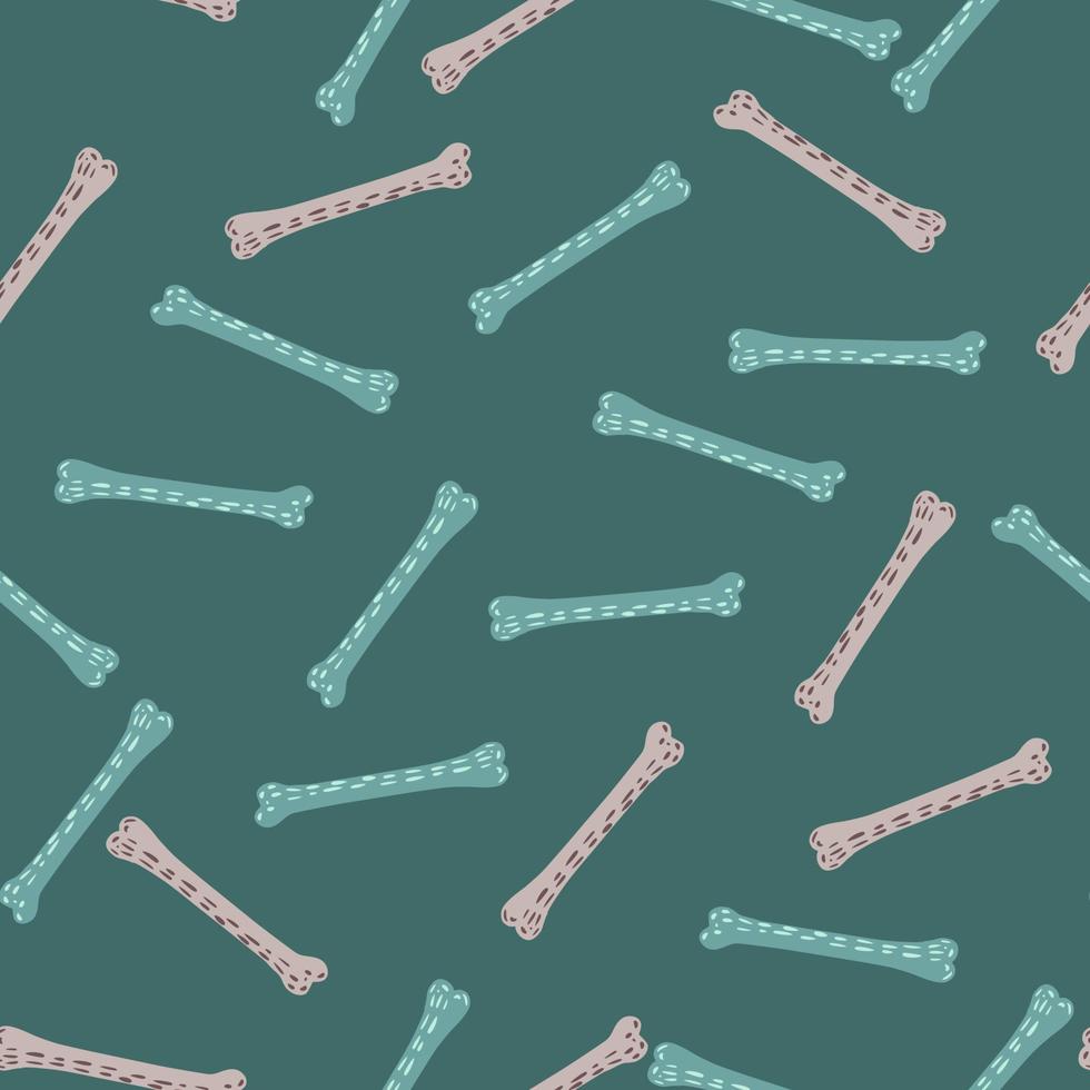 Seamless pattern in hand drawn style with decorative canine bones random shapes. Turquoise background. Pro Vector