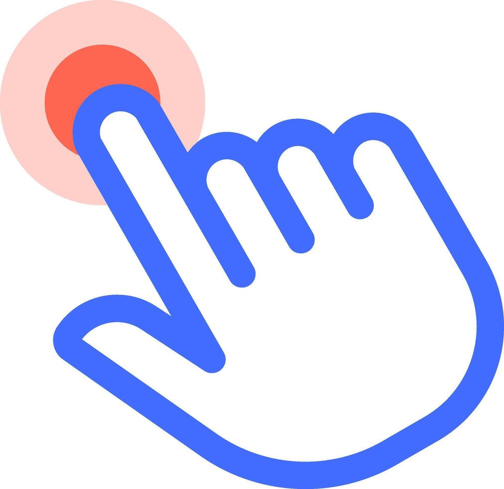 Cartoon hand with index finger extended, touching and pressing a red button with a pink halo, representing a digital interaction or online selection Pro Vector