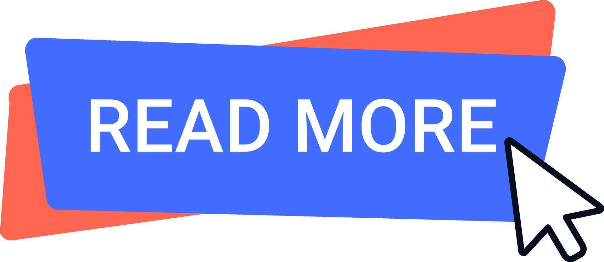 Mouse cursor clicking on a read more button against a blue and red layered background, symbolizing the pursuit of additional information on a website Pro Vector