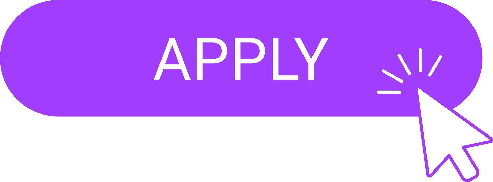 Illustration of a purple button labeled Apply with a clicking cursor icon. Represents online application processes, digital interactions, and user interface design concepts Pro Vector