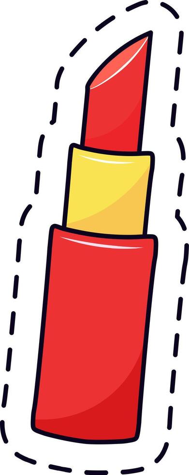 Red lipstick slightly tilted to the right with a golden ring separating the body from the upper part, surrounded by a dotted line, creating a playful and attention grabbing effect Pro Vector