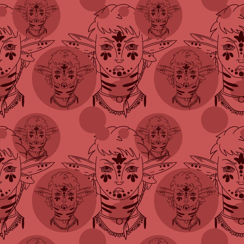 Avatar pattern for expressing emotions. Hand drawn, scribbled illustrations in black and white, ink style, Red background. A fictional avatar. Anger. Pro Vector