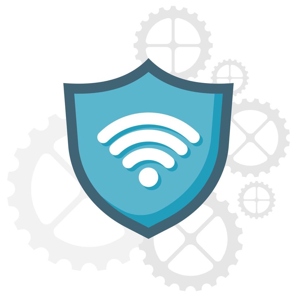 shield and internet signal symbol with gear background, internet network security Pro Vector