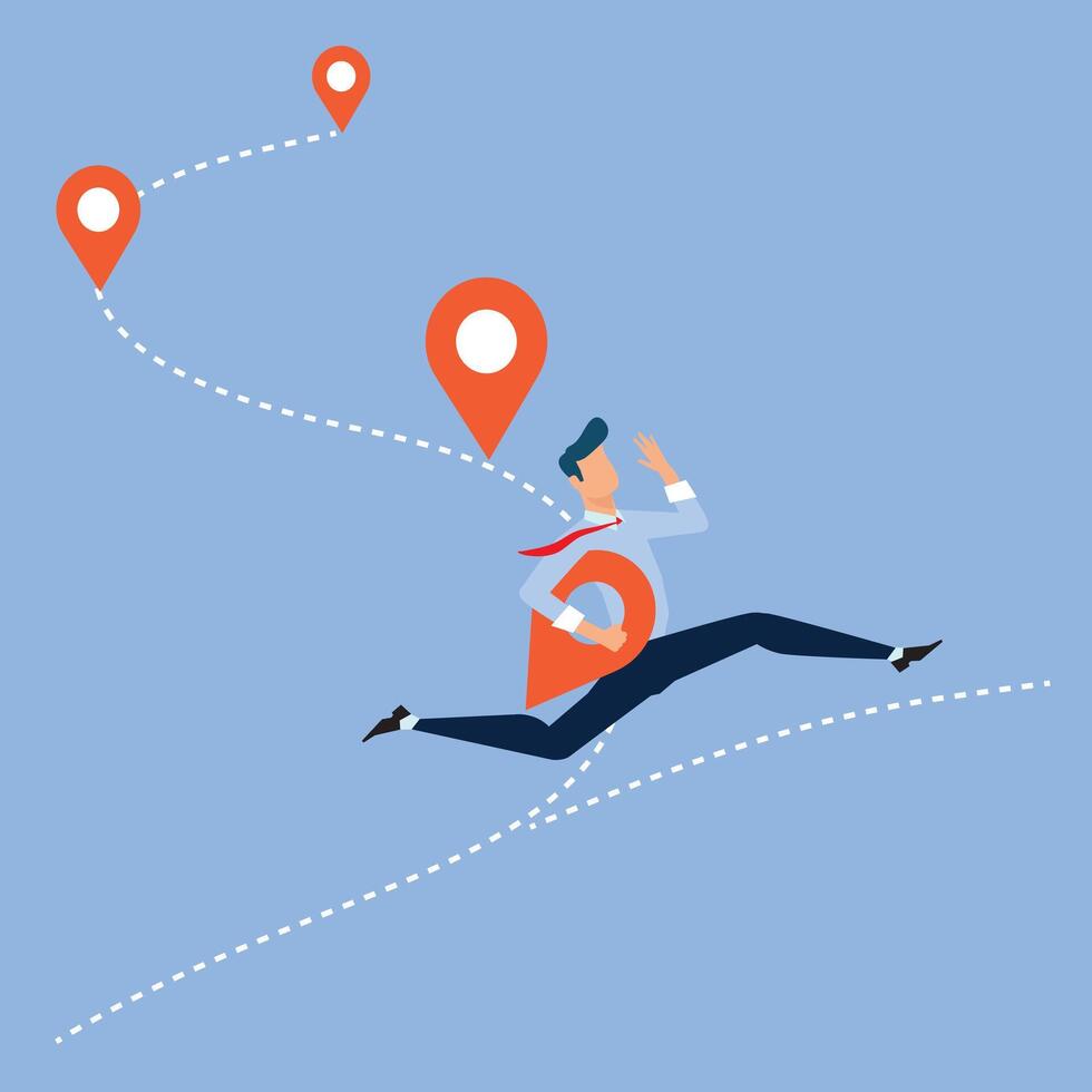 A man carries a location pin away from the guide. Illustration for making your own business path, career planning, skill development, professional way. Pro Vector