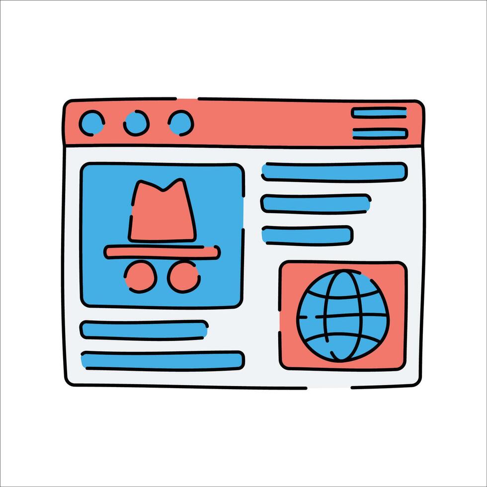 Incognito Mode Window, A browser window with a spy icon, indicating private browsing or anonymous surfing. Pro Vector