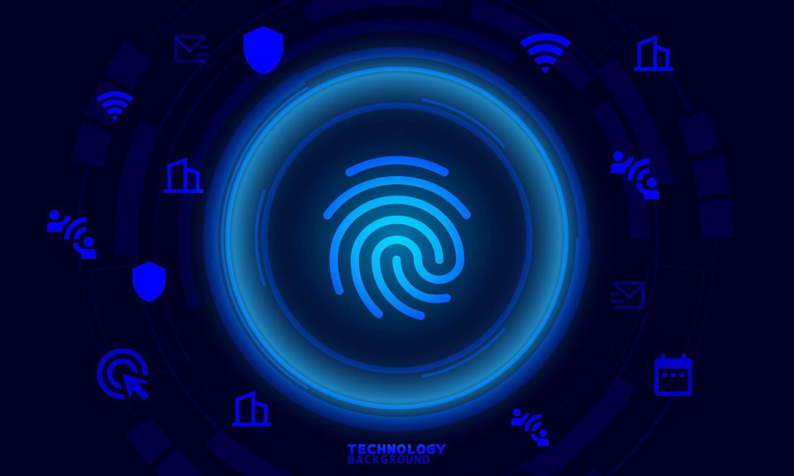 fingerprint of Business innovation technology concept. technology background. neon effect. circuit board concept. Hi-tech digital technology. Pro Vector