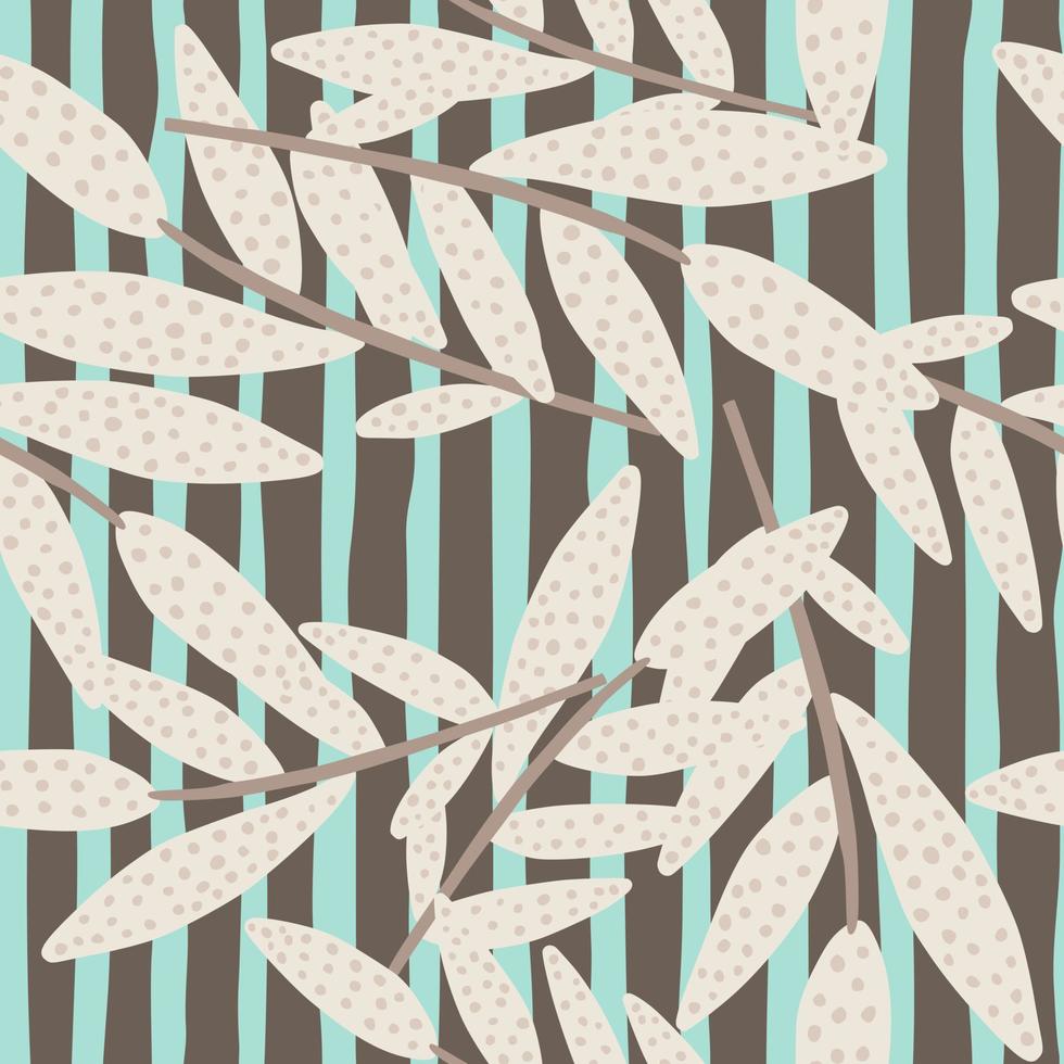 Seamless pattern with random location pink branches on dark brown background and blue lines. Pro Vector