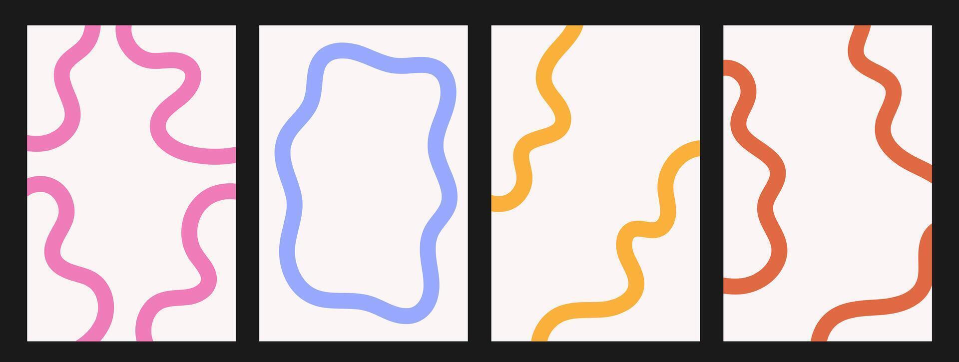 Abstract playful minimalistic background with wavy line. Frame border with organic curvy curly stripe. Wave line art Pro Vector