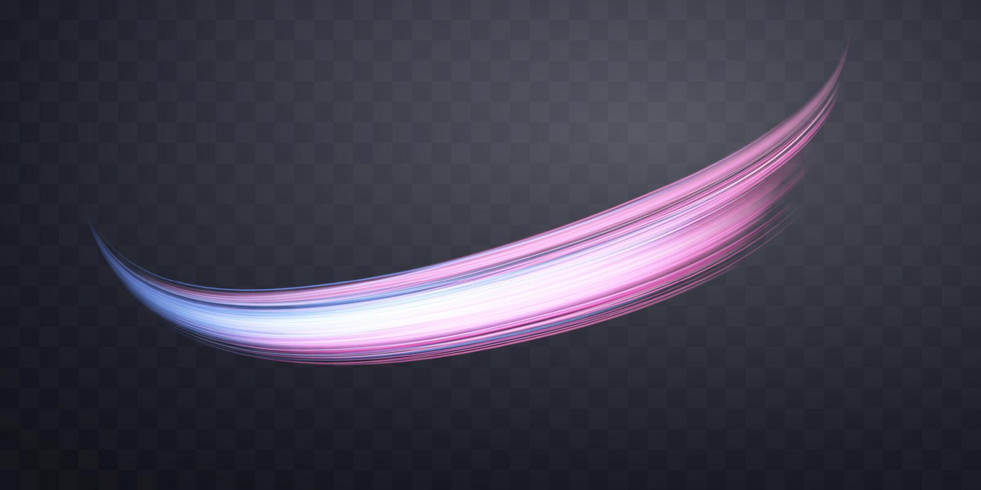 Glowing pink and blue lines. Dynamic neon realistic energy speed wave. Abstract curve twirl light effect on a dark background Pro Vector