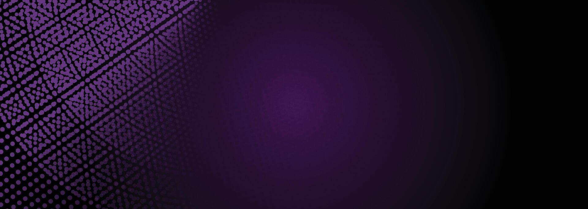 Geometric technology background with dark purple, pink gradient circles and flowing particles for digital music and website design Pro Vector