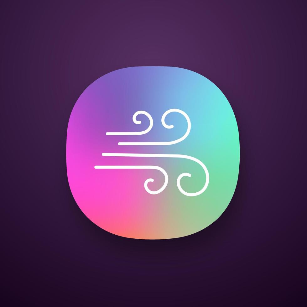 Airflow app icon. UI UX user interface. Wind. Windy weather. Air ventilation. Web or mobile application. Vector isolated illustration Pro Vector