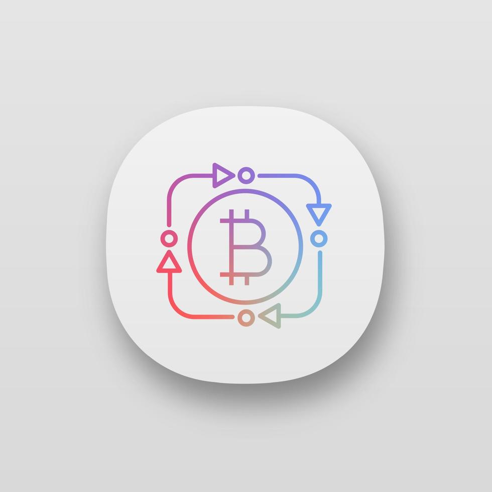 Bitcoin exchange app icon. Digital currency transaction. UI UX user interface. Circle arrows with bitcoin inside. Refund cryptocurrency contour symbol. Fintech, big data. Vector isolated illustration Pro Vector
