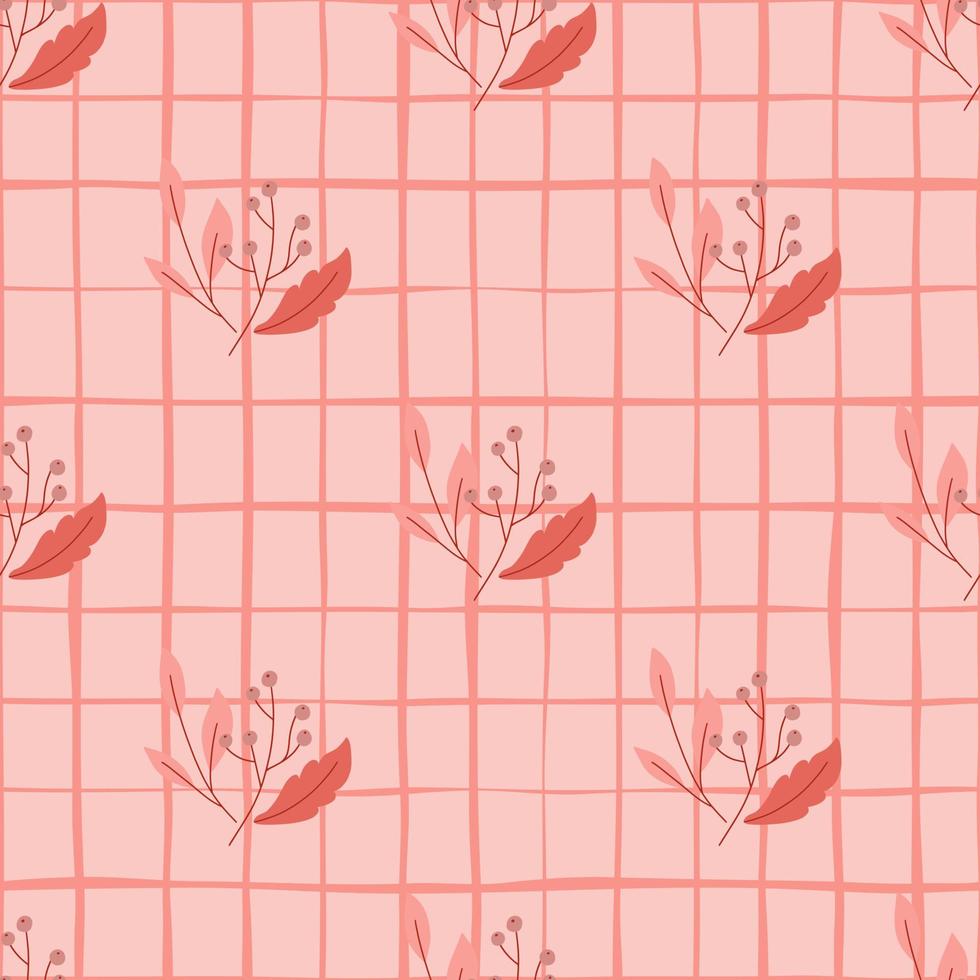 Geometric style seamless pattern with red leaves and berries shapes. Chequered background. Doodle style. Pro Vector