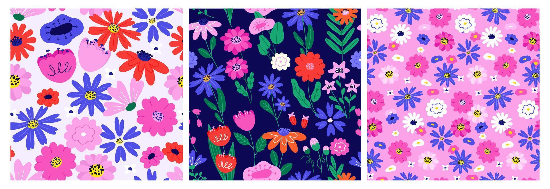 Floral spring pattern. Seamless print of blooming flowers, abstract botanical flower blossom background for wrapping paper fabric textile design. texture Pro Vector