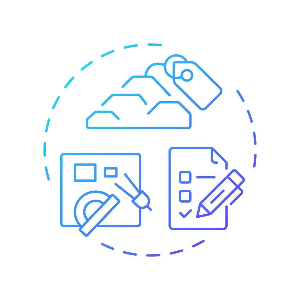 Bill of materials blue gradient concept icon. MRP input. List of components required to manufacture product. Round shape line illustration. Abstract idea. Graphic design. Easy to use in article Pro Vector