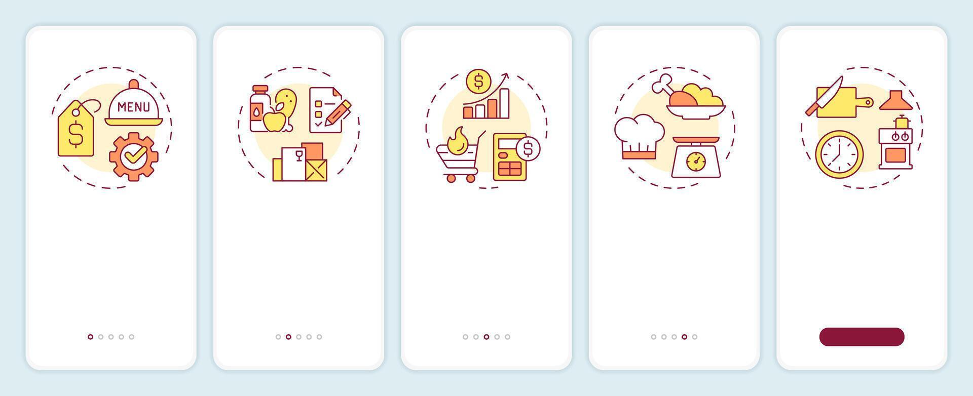 Restaurant management onboarding mobile app screen. Business. Walkthrough 5 steps editable graphic instructions with linear concepts. UI, UX, GUI template Pro Vector