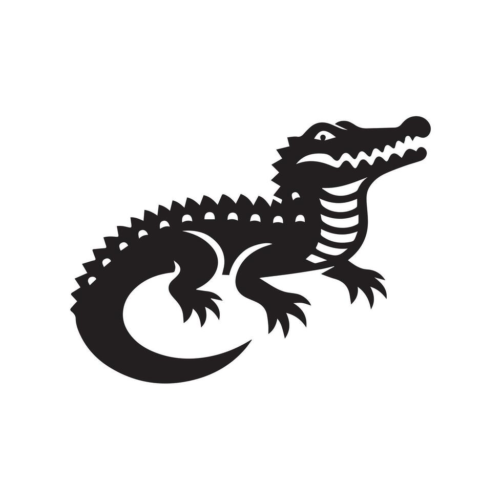 A stylized, bold black silhouette of a crocodile positioned within a circular frame. Pro Vector