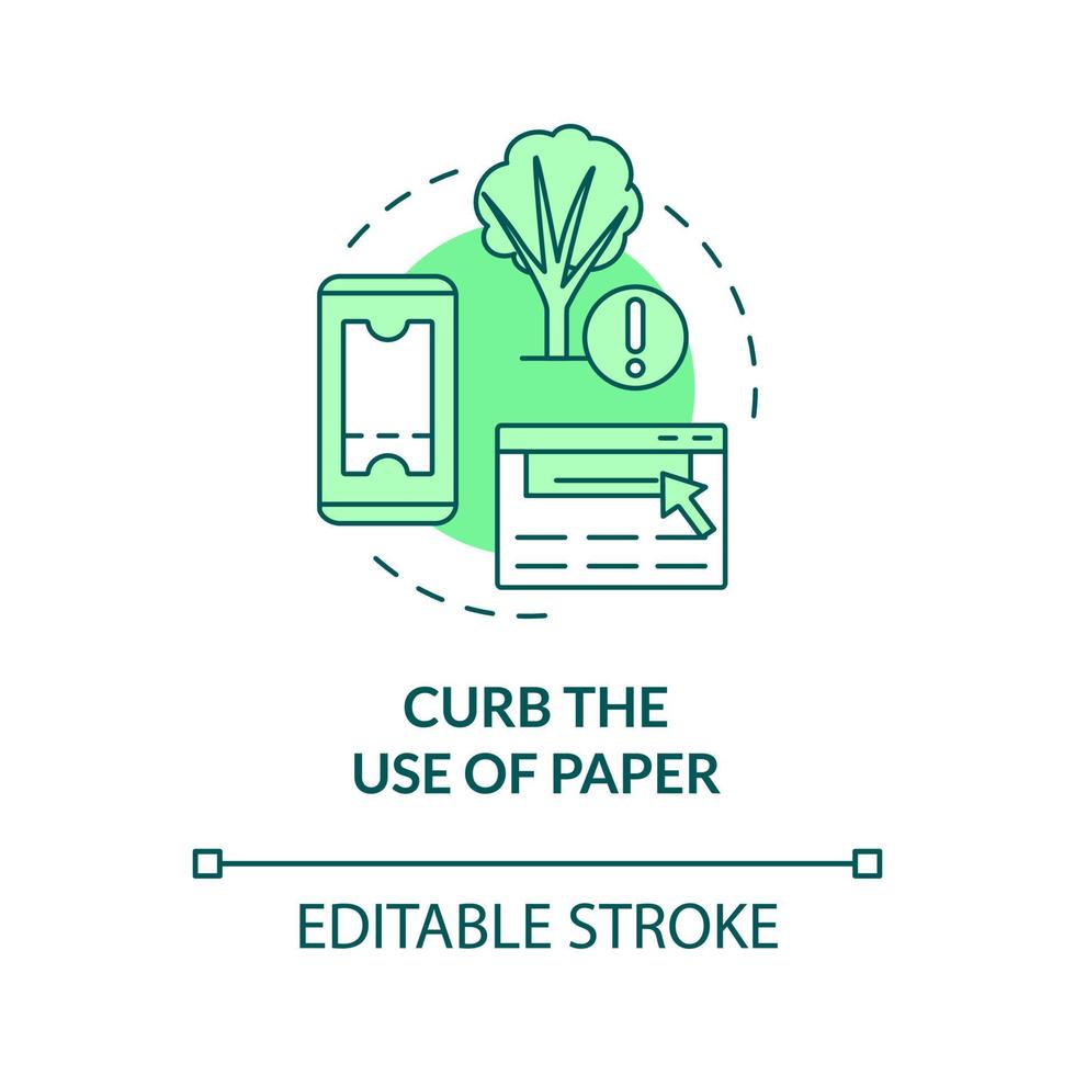 Curb use of paper green concept icon. Save trees and forest. Minimize waste abstract idea thin line illustration. Isolated outline drawing. Editable stroke. Roboto-Medium, Myriad Pro-Bold fonts used Pro Vector