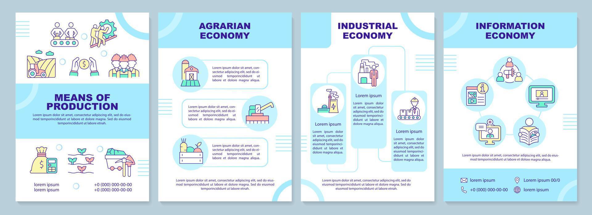 Economic system blue brochure template. Production and distribution Leaflet design with linear icons. 4 vector layouts for presentation, annual reports. Arial-Black, Myriad Pro-Regular fonts used Pro Vector