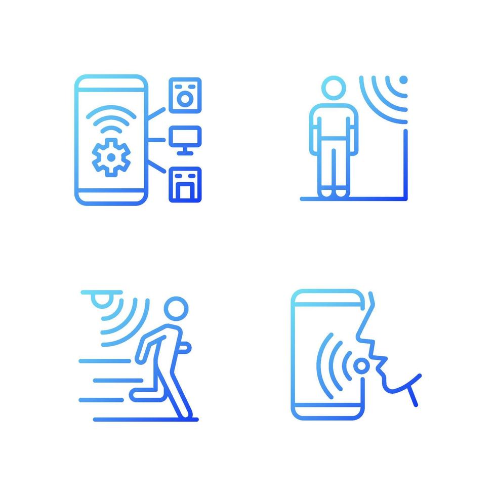 Sensor technology gradient linear vector icons set. Mobile application for remote control. Smart gadget. Thin line contour symbol designs bundle. Isolated outline illustrations collection Pro Vector and Pro SVG